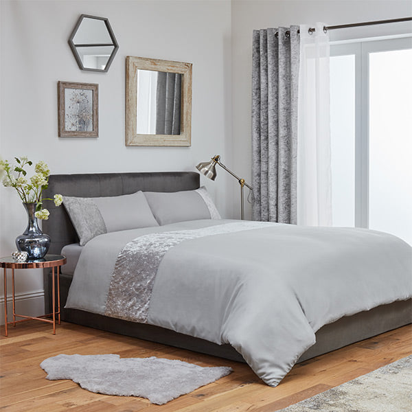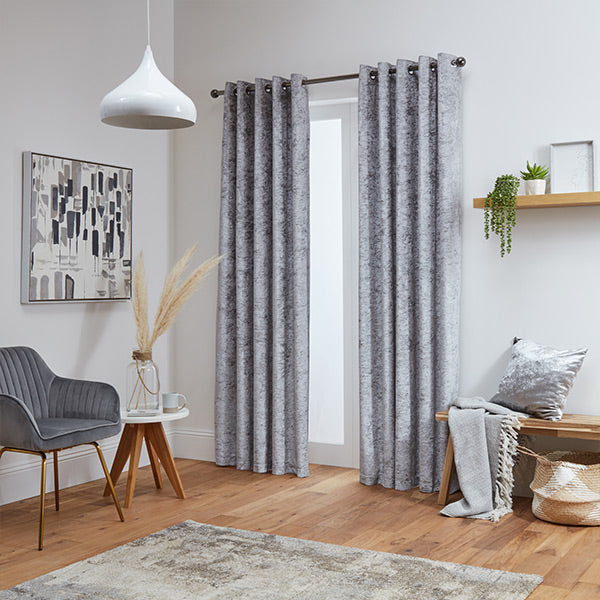 Crushed Velvet Fully Lined Ready Made Eyelet Curtains (Silver - Grey)