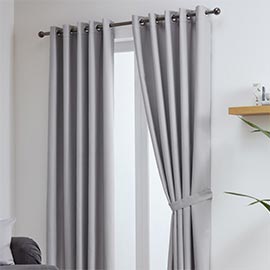 Faux Silk Eyelet Fully Lined Curtains (Grey)
