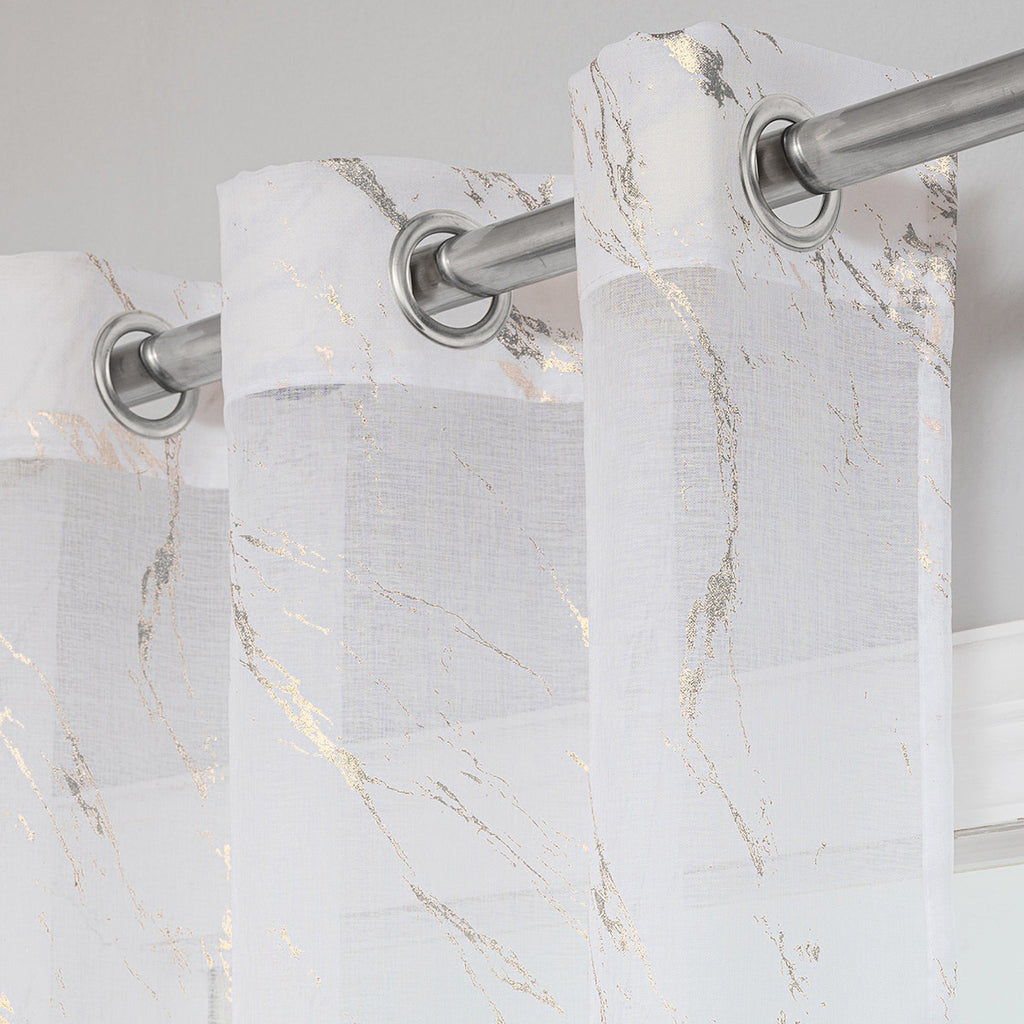 Our Foil Marble Sheer Linen Effect Panel is the perfect blend of subtle luxury and contemporary design. Featuring a delicate white linen base with shimmering foil printed marbling, this panel catches the light beautifully—creating a soft, airy atmosphere by day and a sophisticated shimmer by night.