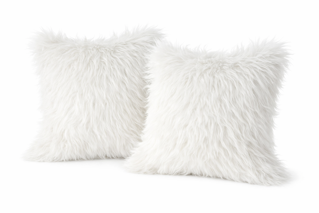 Set Of 2 Fluffy Faux Fur Shaggy Cushion Covers 18 x 18"