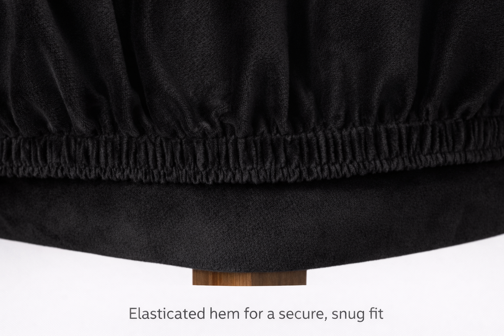 Made from a high-quality velvet fabric with added stretch, these covers fit snugly over most standard dining chairs, including chairs with tall backs and rolled top edges. The elasticated hem ensures a secure fit that stays in place.