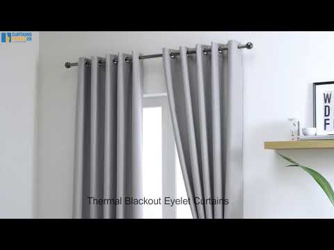 These Exceptional Quality Thermal Blackout Curtains are made using a single layer of fabric which has a supersoft touch. This single layer has a thermal interwoven lining which provides insulation reducing heat loss and reducing light (90% Blackout). They come with an eyelet heading.   Tie backs are included.